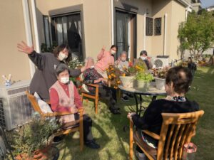 食後、いいお天気だったのでお庭で日向