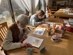 みなさん、色塗りや大判カレンダー作製