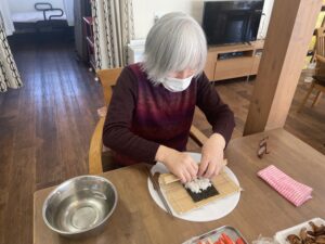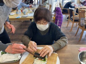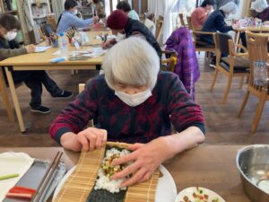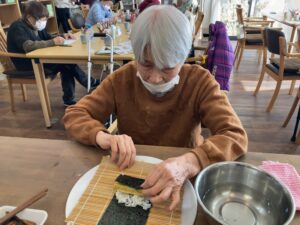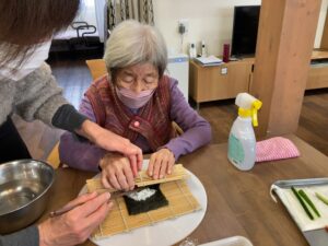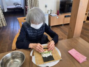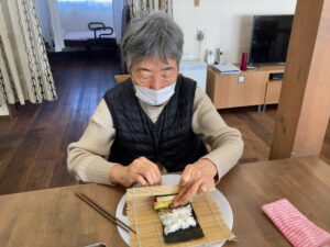2月3日 恵方巻き(南南東) 2月3日、火曜日、曇り 一日中、どんよりとした冬空でしたね☁ みなさん上手に巻かれていました😊 本日のランチメニュー 恵方巻き 赤魚の西京焼き 里芋の煮物 お吸い物 桃 本日のおやつは、ロールケーキでした😋 Error happened. Tweet 投稿者: yanwari 神戸市西区にある家庭型デイサービスやん和りは株式会社プティタプティが運営しています。 yanwari の投稿をすべて表示
