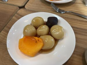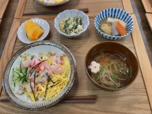 10月24日 朝が冷え込んできました 10月24日、金曜日、晴れ 日中は、暖かいですね😊 本日のランチメニュー ちらし寿司 さつま芋の白和え 炊き合わせ すまし汁、柿 上手に投げられていました❗ 本日のおやつは、冷やし白玉団子でした😋 Error happened.