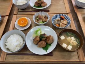 11月22日 小雪 11月22日、土曜日、晴れ 今日も秋晴れでしたヽ(^。^)ノ 本日のランチメニュー 照り焼きつくね 長芋のポン酢炒め 根菜の煮物 ご飯、みそ汁、みかん お庭で日向ぼっこタイムです☀️🤗 本日のおやつは、りんごのマフィンでし た🍎 Error happened.
