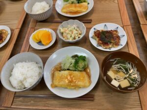 11月25日 16日ぶりの雨 11月25日、火曜日、雨から曇り時々晴れ 午前中は、よく降りましたね☔ 本日のランチメニュー 白身魚のピカタ ポテトマカロニサラダ 豆腐入りキャベツ焼き ご飯、すまし汁、柿 本日のおやつは、よもぎ餅でした😉 Error happened.