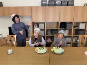 12月2日 お誕生日会 12月2日、火曜日、曇り時々晴れ 明日から真冬になりそうですね(>_<) 本日のランチメニュー 野菜肉巻きフライ コールスローサラダ 酢の物 ご飯、みそ汁、みかん寒天 お誕生日おめでとうございます🎉🎊 これからもお元気にお越しください🎀🎁 Error happened.