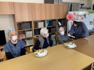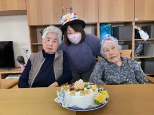 1月12日 お誕生日会 1月12日、月曜日、晴れ 最低気温が-1℃になり、冷え込みました ね😱 本日のランチメニュー 白身魚のフライ にんじんしりしり 大根のそぼろ煮 ご飯、みそ汁、みかん お誕生日おめでとうございます🎉🎊 これからもお元気にお越しください🎀🎁 Error happened.