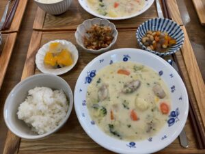 1月24日 みぞれ雪 1月24日、土曜日、晴れ一時雪 15時前に一瞬、みぞれ雪がふりました❄️ 本日のランチメニュー クリームシチュー お好み揚げ 五目豆煮 ご飯 みかん寒天 昼食後の神経衰弱も楽しかったですね😊 本日のおやつは、紅茶のカップケーキで した‼️ Error happened.