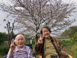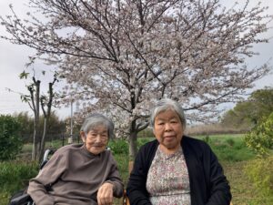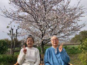 桜と桃をバックに記念撮影をしました📷🤗