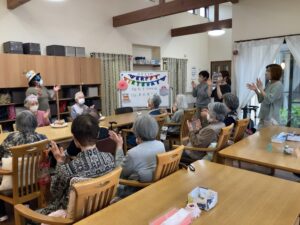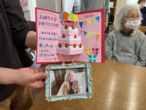 4月10日 お誕生日会 4月10日、金曜日、雨 一日中、雨が降っていましたね☔ 本日のランチメニュー ふくさ焼き 里芋の煮物 みそだれキャベツ ご飯、はんぺんのすまし汁、みかんゼリー お誕生日おめでとうございます🎉🎊 これからもお元気にお越しください🎀🎁 Error happened.