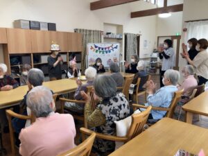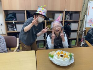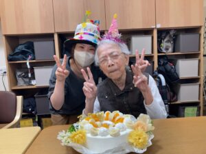 4月22日 お誕生日会 4月22日、水曜日、曇り 今日の朝は、冷え込んでいましたね😖 本日のランチメニュー 豚肉とじゃが芋の炒め物 がんもどきの煮物 うの花 ご飯、みそ汁、りんご お誕生日おめでとうございます🎊🎉 これからもお元気にお越しください🎁🎀 Error happened.